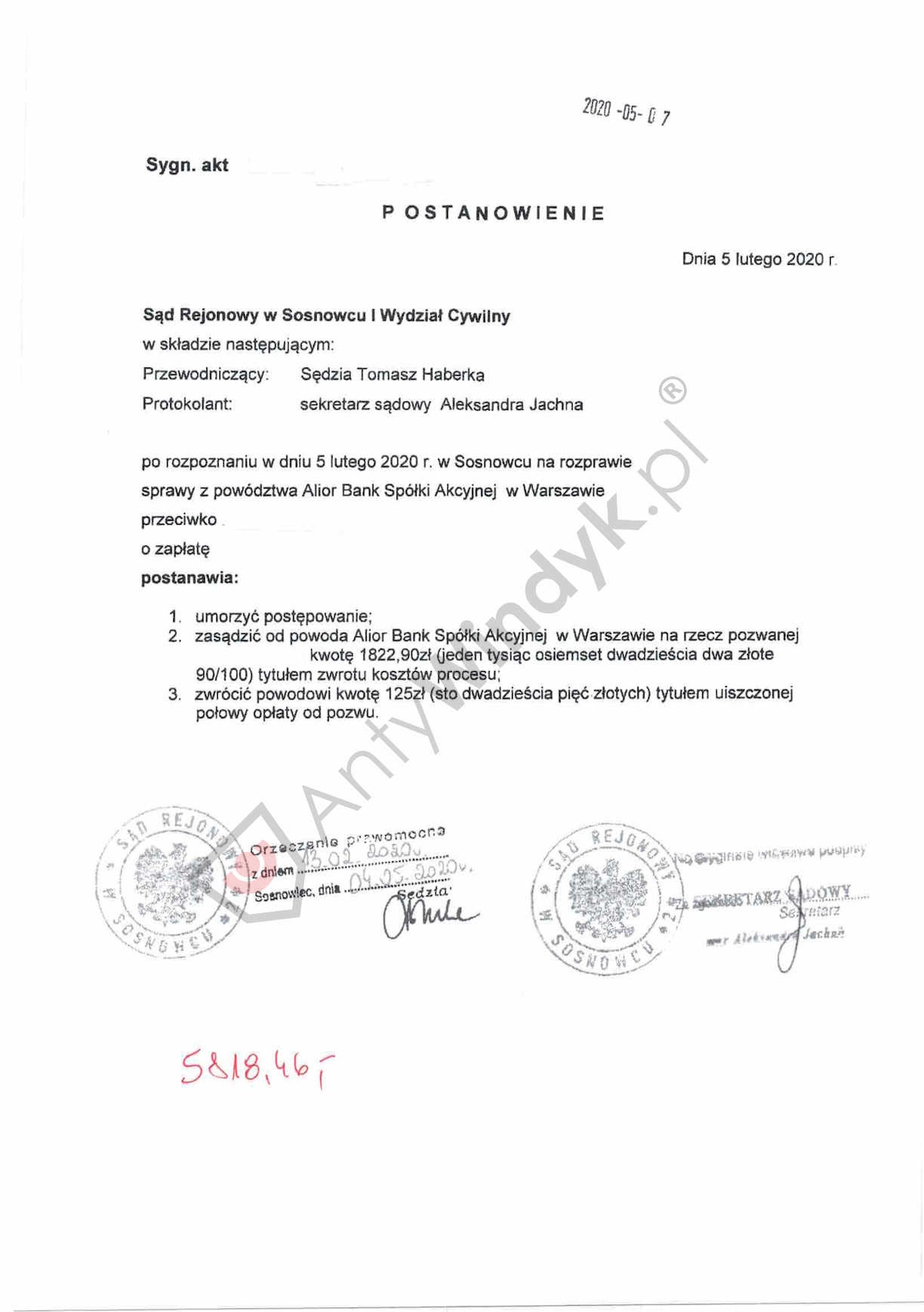 ALIOR BANK – wyrok z dnia 2020.02.05
