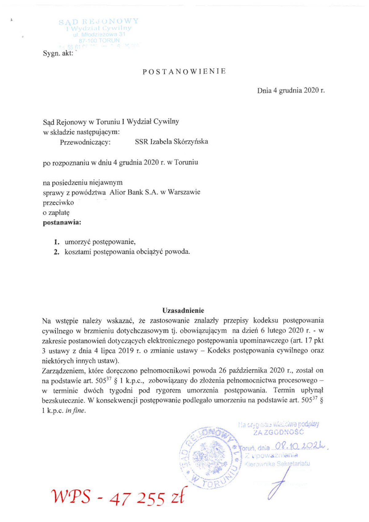 ALIOR BANK – wyrok z dnia 2020.12.04