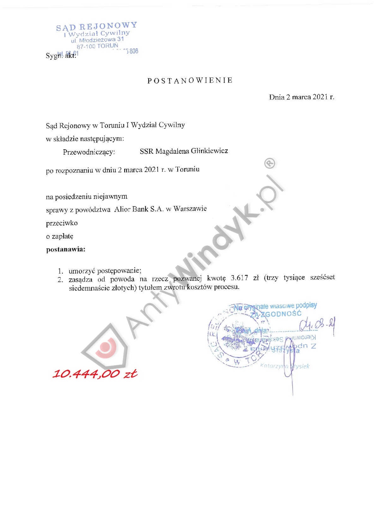 ALIOR BANK – wyrok z dnia 2021-03-02