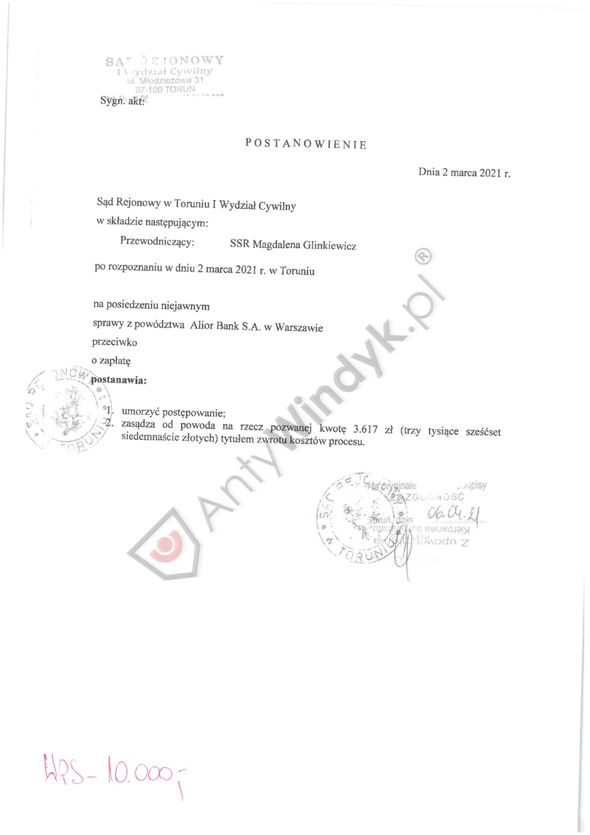 ALIOR BANK – wyrok z dnia 2021.03.02