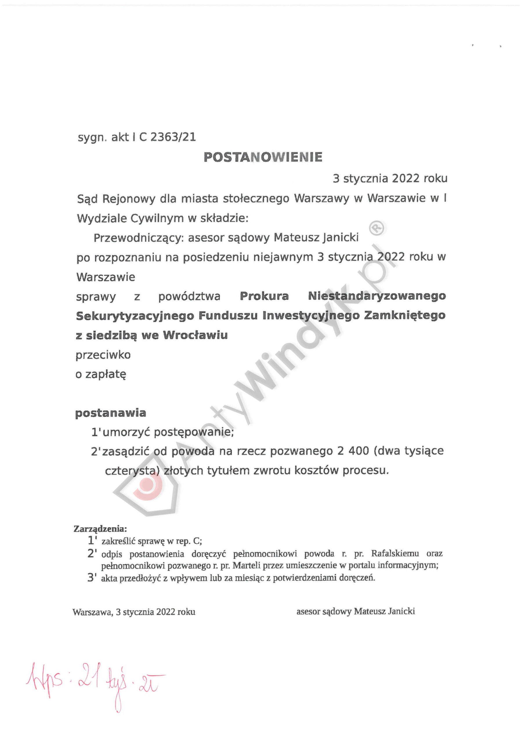 PROKURA FUNDUSZ – wyrokj z dnia 2022-01-03