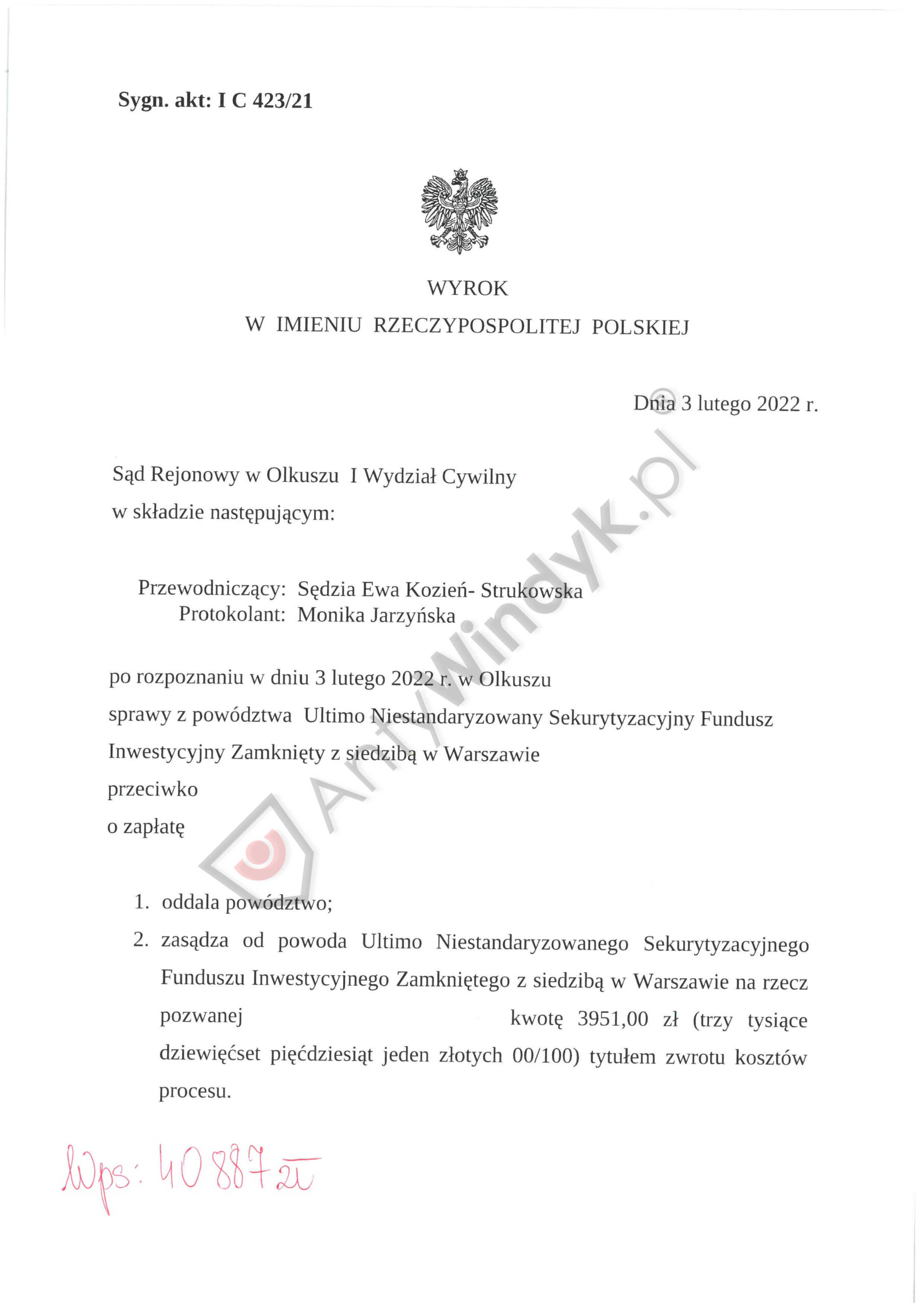 ULTIMO FUNDUSZ – wyrok z dnia 2022-02-03